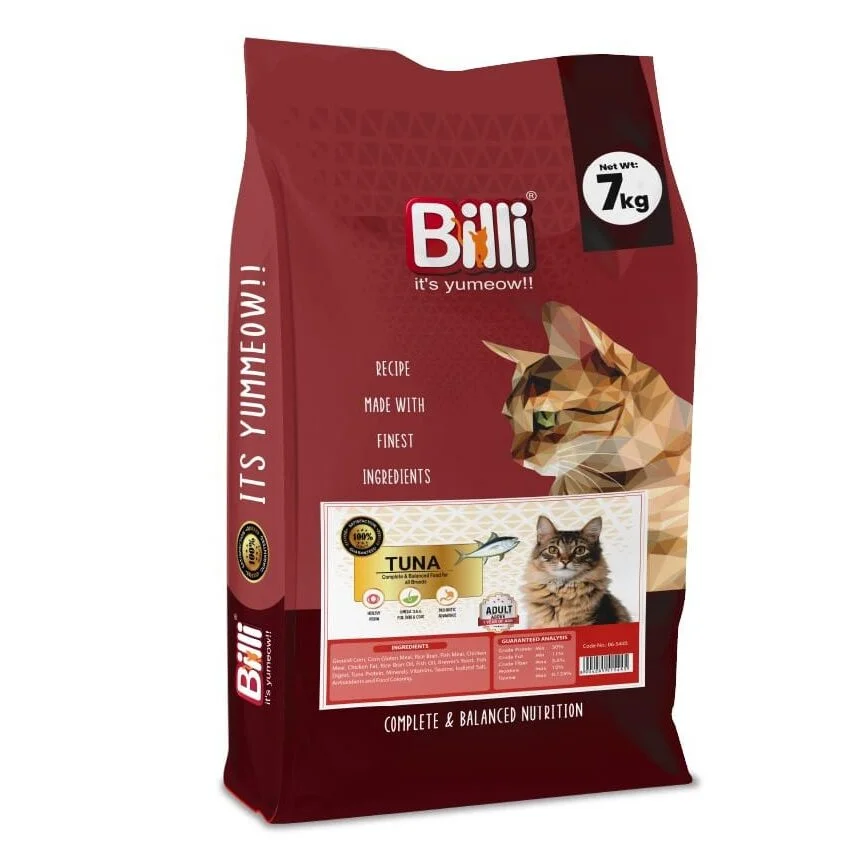 Billi Adult Real Tuna Catfood is the Complete & Balanced Nutrition for Your Pets. Specially Formulated for Adult Cats Aged Above 1 Year. This Delicious Meal Providing 100% of All Essential Nutrients that Kittens Need to Grow Healthy and Strong. Made with Best Quality Ingredients. Made of Quality Meat to Provide Amino Acids to Maintain Good Muscle Mass by Giving High Protein. Optimum Fat Ensures High Energy and Essential Fatty Acids Maintain Healthy Skin and Shiny Coat. All Necessary Vitamins for Body Functions and Enhancement of the Immune system are Included. All Necessary Minerals for Body Functions and Strengthen Bones and Teeth are Included. Added Omega 3 & 6 Ensure Shiny & Beautiful Coat & Healty Skin. Extra Probiotics & Prebiotics Help Boosting Immunity. Taurine Plus Ensures Proper Eye & Brain Function.