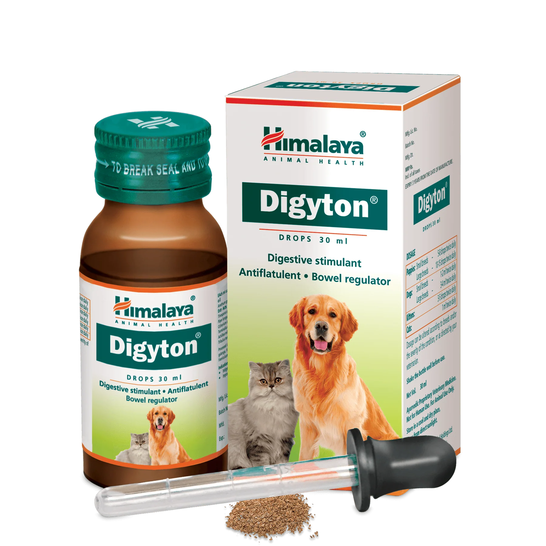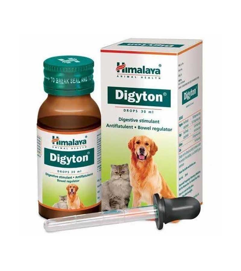 Digestive enzyme secretion: Digyton facilitates the secretion of proteolytic, amylolytic and lipolytic enzymes that catalyze the digestion of food. Regularizes bowel movement: By regularizing bowel movements, it helps in treating gastrointestinal disorders in puppies. It also tones the digestive tract. Carminative: Its carminative action prevents the recurrence of flatulence, colic and abdominal discomfort.