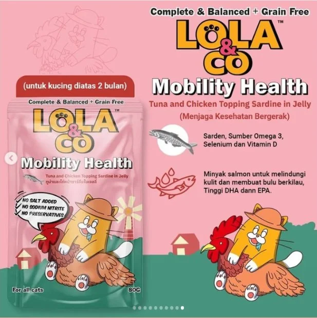 Lola & Co Mobility Health Pouch Tuna & Chicken Topping Sardine in Jelly for All Cats 80g