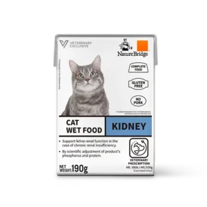 NatureBridge Kidney Cat Wet Food is a veterinary-exclusive, gluten-free formula specially developed to support kidney function in cats by carefully adjusting protein, phosphorus, and sodium levels for better renal health.